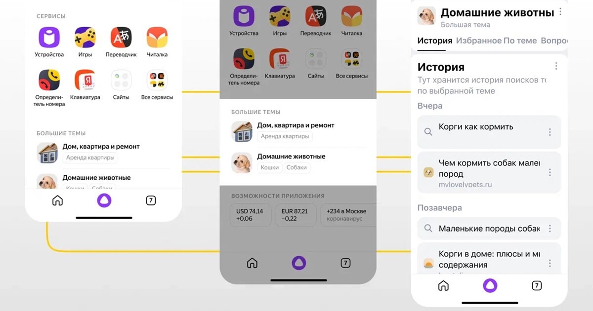 Поиск теперь можно выполнять текстом, голосом или при помощи картинки.Визуальный поиск работает при помощи камеры, которую можно навести на объект.Также сохраняется загрузка изображения из галереи телефона или компьютера.