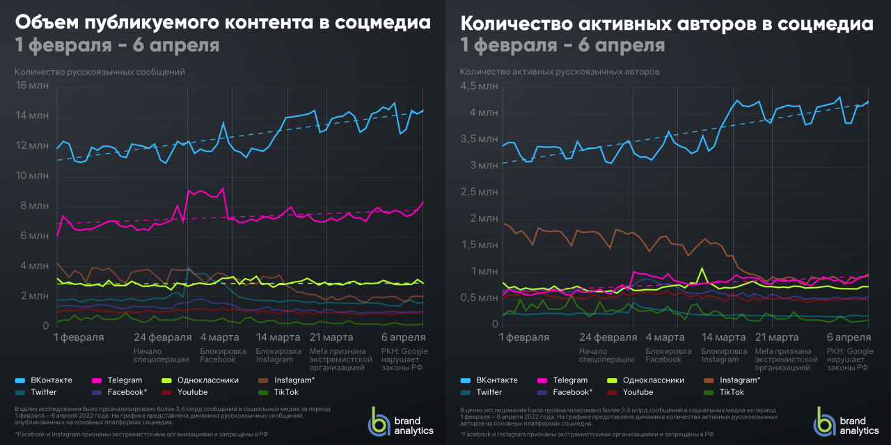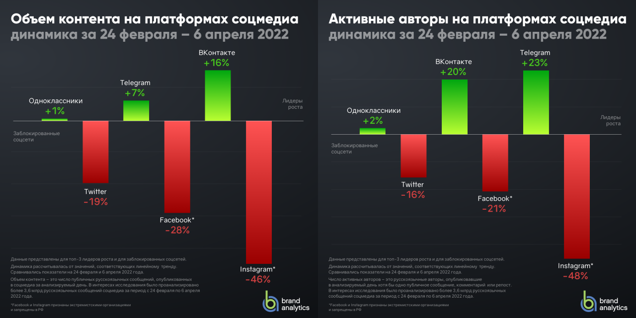 В исследовании Brand Analytics сравнивались показатели 24 февраля и 6 апреля