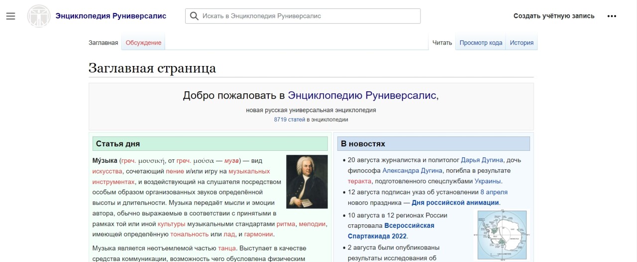 В России заработала онлайн-энциклопедия «Руниверсалис», расположенная на российских серверах