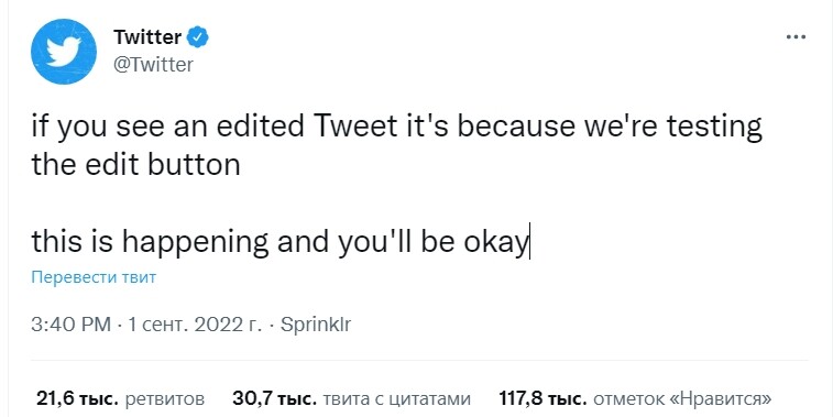 Отредактированные твиты будут отображаться с пометкой и указанием времениповторной публикации, чтобы читатели могли понять, что исходный твит былизменен. Нажав на метку, зрители перейдут к истории редактирования твита,которая включает прошлые версии поста.