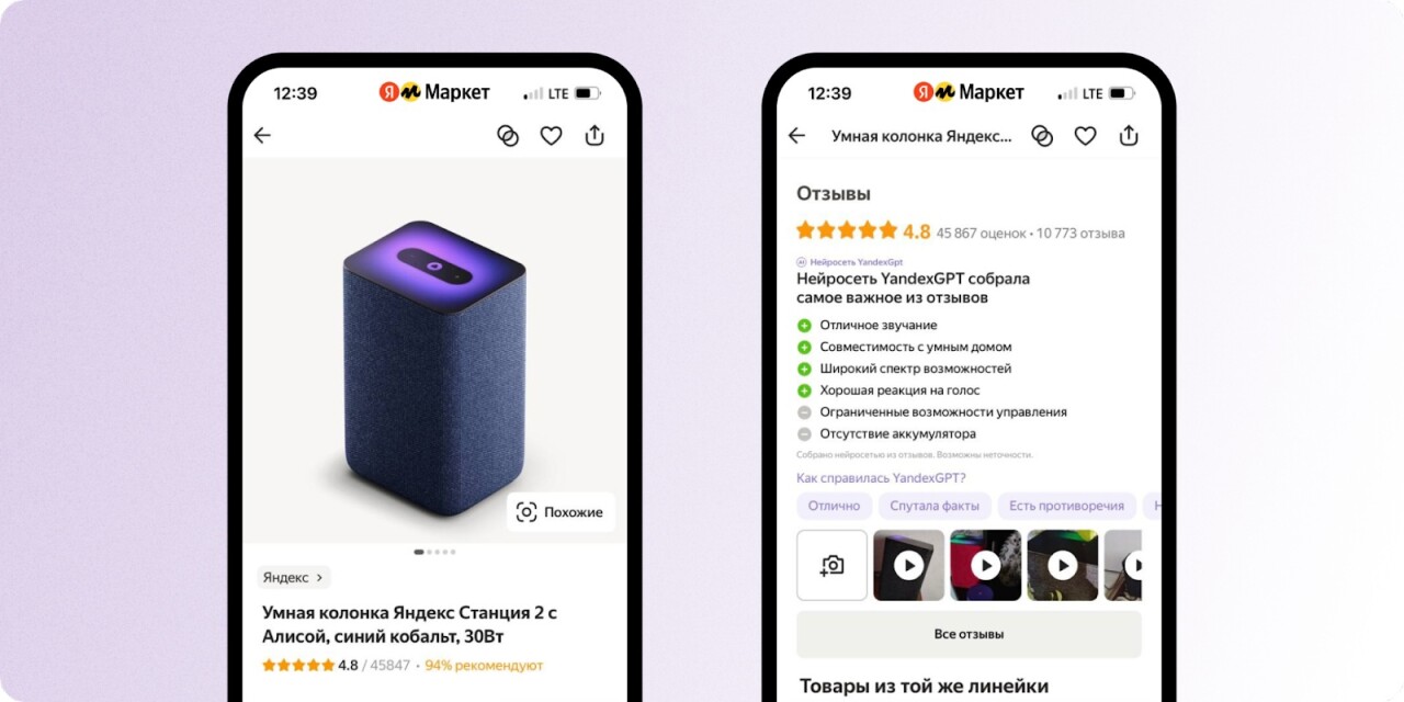 YandexGPT начала формировать список плюсов и минусов из отзывов о товарах