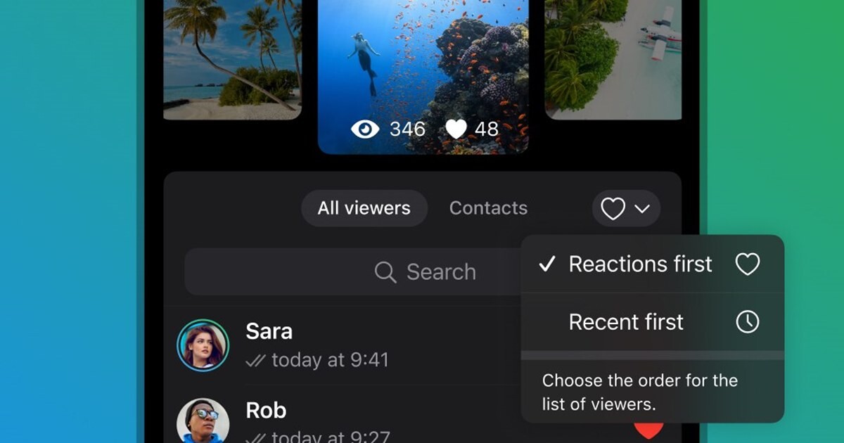 Включены и другие обновления. Например, можно посмотреть, кто из контактовразместил сторис, а также переместить в начало списка недавние просмотры илиреакции. Введя имя конкретного человека в строке поиска, можно сразуопределить, смотрел он сторис или нет. Список тех, кто просматривал публикации,исчезает через 24 часа. Однако пользователи с аккаунтом Telegram Premium могутпользоваться им все время.
