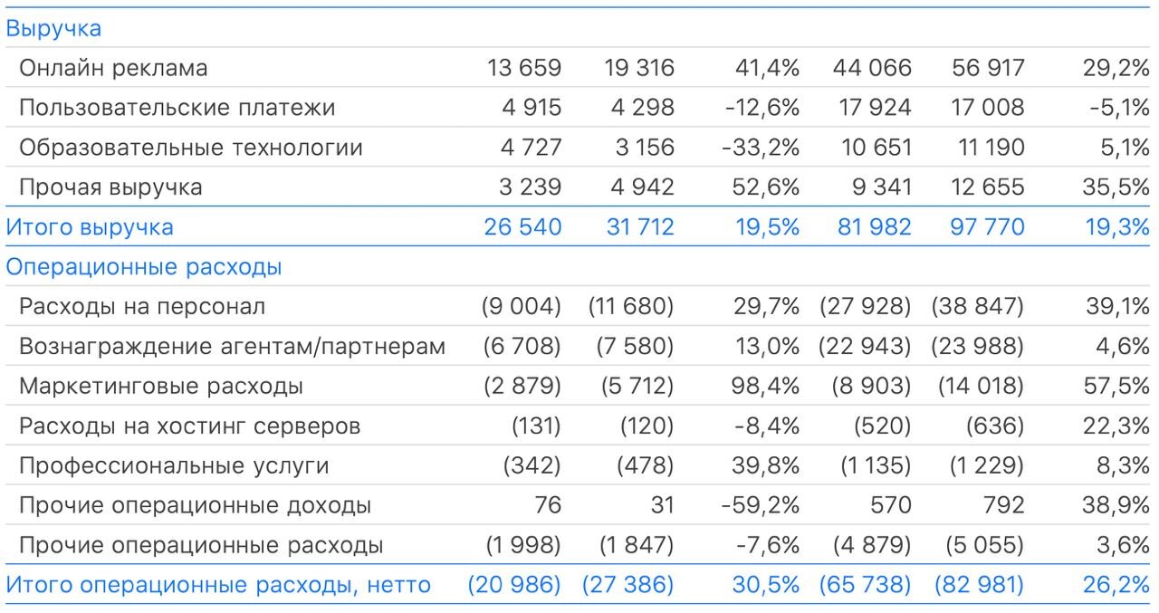 Выручка сегмента «Социальные сети и контентные сервисы» увеличилась на 21,8%за прошлый год и на треть в четвертом квартале. Основным драйвером также сталрост доходов от онлайн-рекламы.