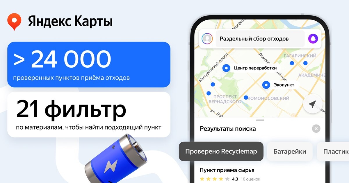 «Яндекс Карты» добавили пункты сбора вторсырья, проверенные Greenpeace