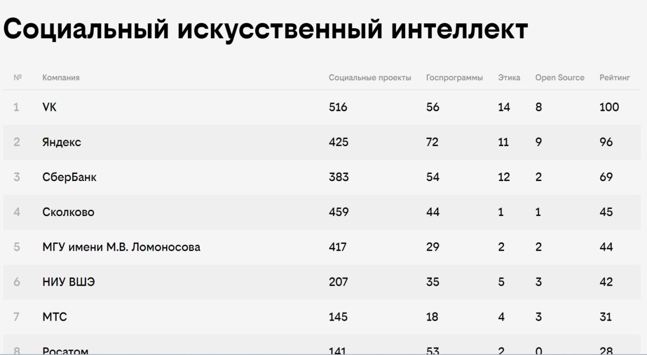Нейросеть составила рейтинг российских компаний в сфере ИИ на основе новостей в СМИ