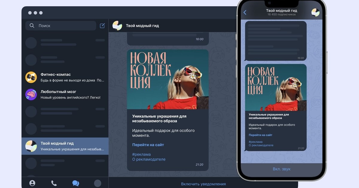 Объявление выглядит как обычный пост: с картинкой или видео и ссылкой —например, на лендинг рекламируемого продукта. Пост обязательно включает пометку«Реклама» и ссылку на страничку с подробностями о рекламодателе. Тексты,изображения и видео проходят модерацию, а данные о рекламе в соответствии сзаконом передаются в ЕРИР.
