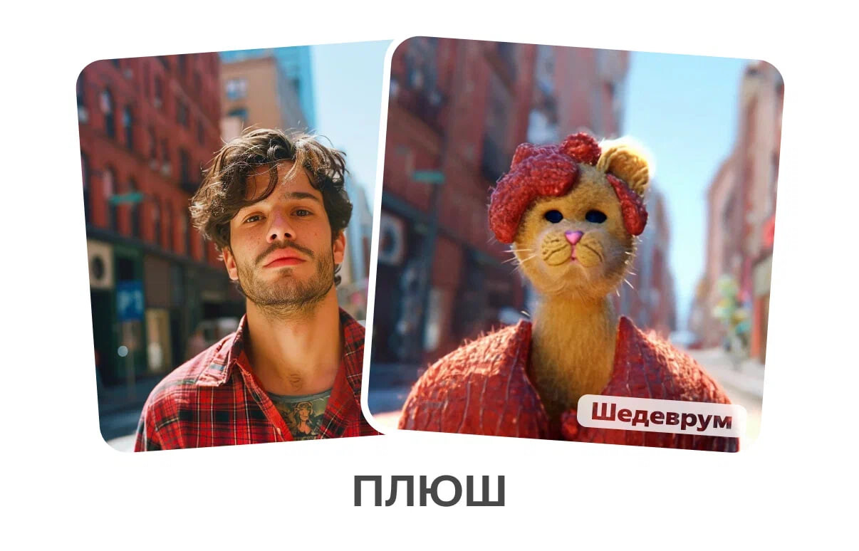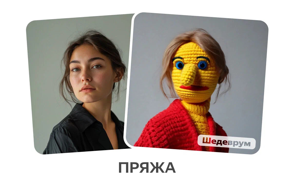 Изображения можно стилизовать под плюшевые или вязаные игрушки, кадры измультфильмов, пиксельную графику, нарисованные кистью картинки, а такжедобавить на них зимнюю атмосферу, неоновое свечение и цветы. Нейросетьперерисовывает изображение в выбранном пользователем стиле, сохраняя сходство соригиналом.