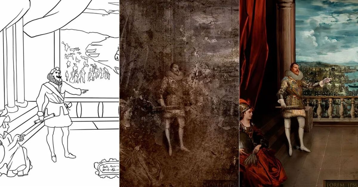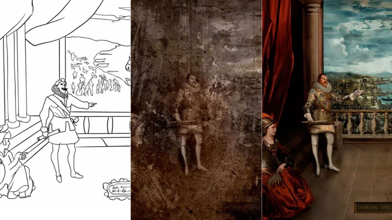 «Самыми сложными элементами были ступени, занавески, руки (одна— нейросети, а другая — художника) Филиппа III и, прежде всего,архитектура», — сказал он.