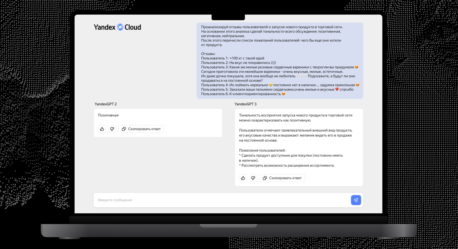 В ближайшее время ИИ-модель YandexGPT 3 появится в сервисах «Яндексa» дляширокой аудитории. Также в компании отметили, что в будущем нейросетей станетбольше и каждая из них будет отвечать за решение определенного типа задач.