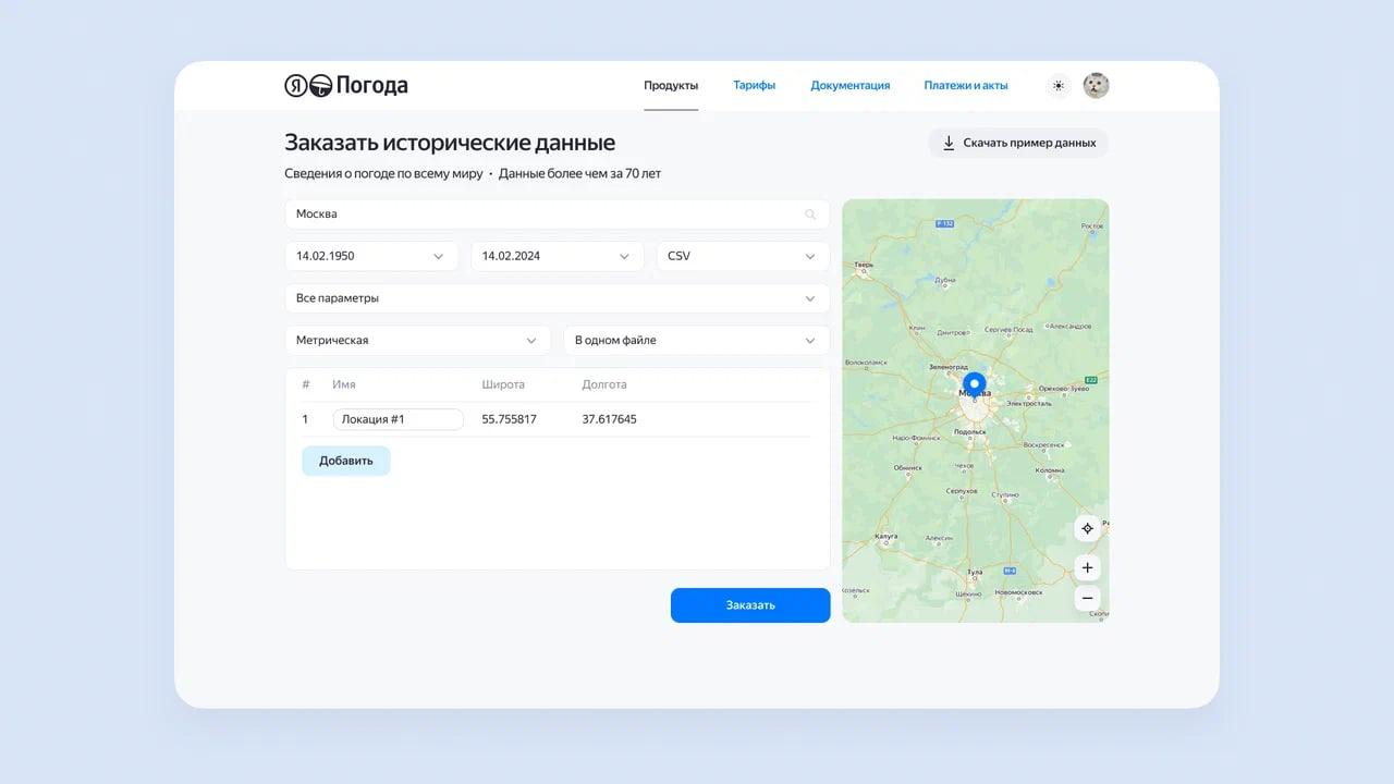 Бизнес также сможет получить в сервисе доступ к сезонному прогнозу наполгода, API с погодными данными за ближайшие 30 дней, ежечасным историческимданным о погоде на территории России с 1950 г. и индивидуальному отраслевомурешению от аналитиков и метеорологов.