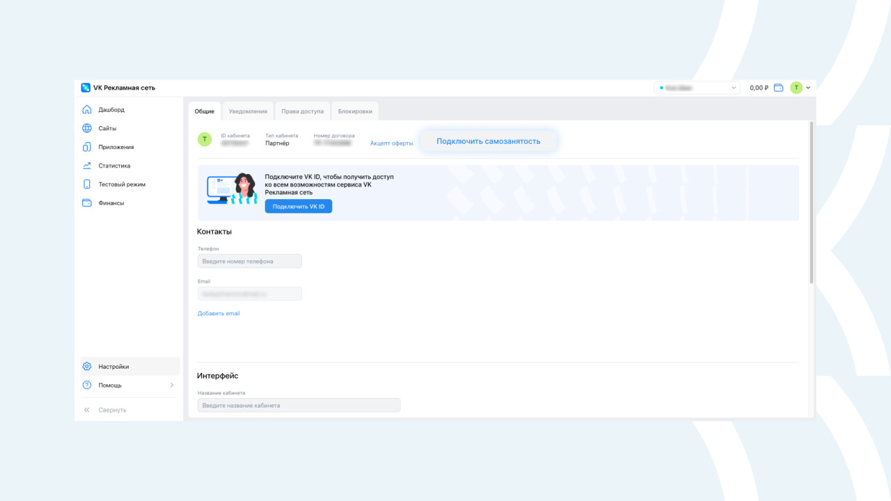 Кабинет рекламной сети интегрирован с VK Pay: система автоматическиформирует чеки и направляет информацию о доходах в ФНС РФ. Получатьзаработанные средства можно на карты российских банков без комиссии — этирасходы за партнеров будет покрывать VK.