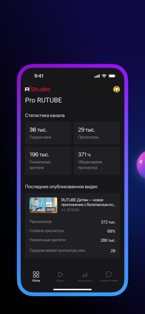 Rutube должен был выпустить мобильную студию блогера Rutube Studio во второйполовине 2023 г. Дизайн мобильного приложенияразработала команда Артемия Лебедева.