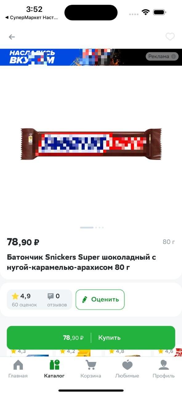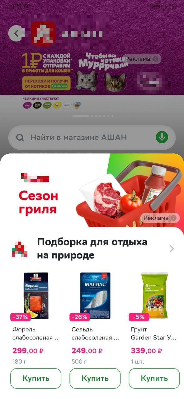 Баннер в карточке товара размещается на первом экране. Бренд сможет выбратьконкретные продукты для точечного показа.