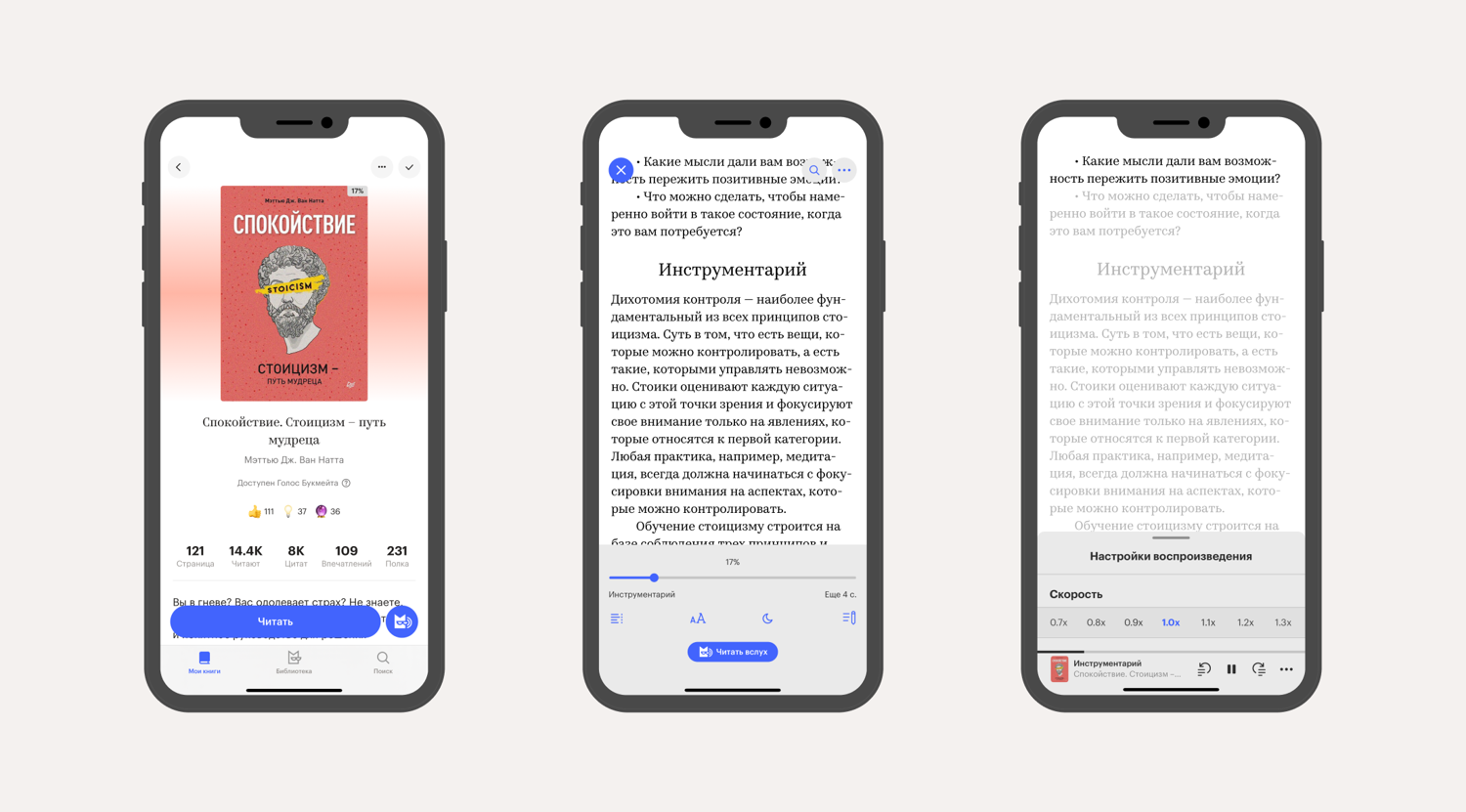 Пока услуга доступна для определенного количества книг. Виртуальныйрассказчик читает вслух и создан на базе речевых технологий «Яндекса».Воспроизведение приближено к реальной речи. Для этого нейросеть обучают надлинных текстах, в которых много повествований и описаний. Затем людиисправляют неправильные ударения и другие неточности.