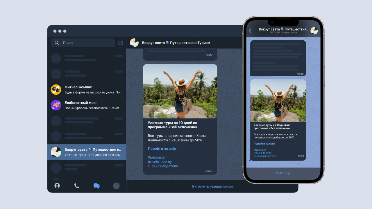 Публикация в «Телеграме» от «Яндекса» представляет из себя пост с картинкой,видео и ссылкой, например, на сайт рекламодателя. Также нейросети подбираютрекламу с учетом контента и тематики канала. Все посты проходят модерацию, аданные о рекламном объявлении автоматически передаются в ЕРИР.