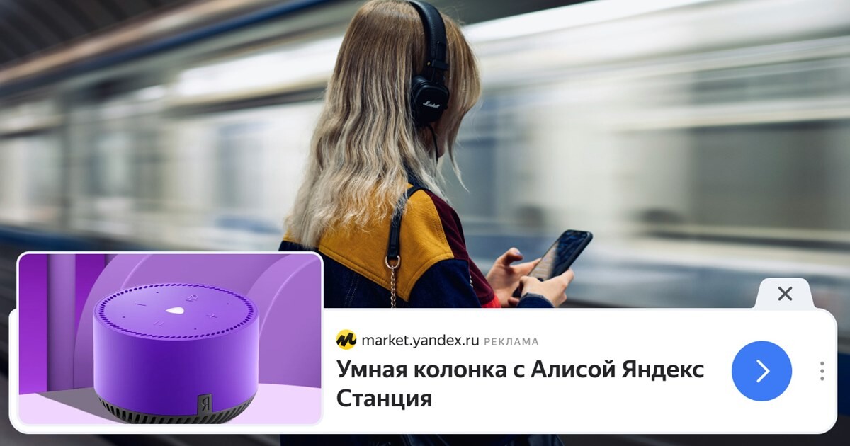 Реклама размещается в нижней части картинки. Пользователь может скрытьобъявление в любой момент. Все текущие рекламные кампании РСЯ будутавтоматически показываться и в новом формате.