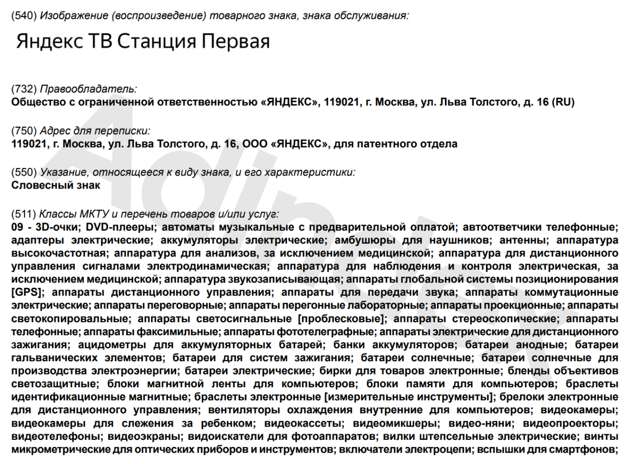 «Яндекс» регистрирует товарные знаки новых ТВ-станций