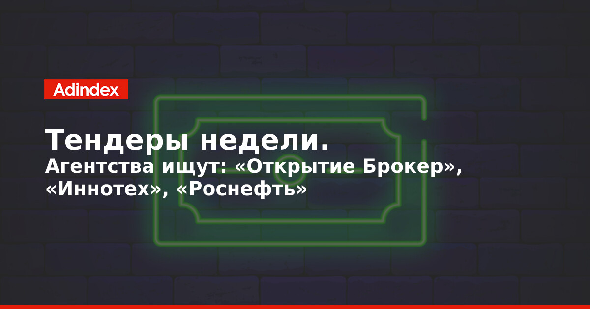 Тендеры недели. Агентства ищут: «Открытие Брокер», «Иннотех», «Роснефть»
