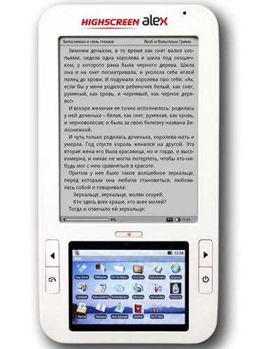 В сентябре на российском рынке стартуют продажи гибридного устройства Highscreen Alex, совмещающего функции ридера и планшета, рассказали CNews в компании «Вобис Компьютер», которая будет поставлять этот продукт. Стоимость устройства, называемого производителем веббук, составит менее 15 тыс. руб. Производит устройства тайваньская Spring Design. В США продажи этого дивайса начались несколько месяцев назад.
