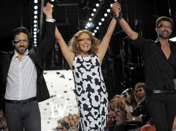 Сам Брин вместе с Фюрстенберг также поучаствовали в показе, не снимая своих прототипов Glass. Очевидно, компания Google пытается тем самым внушить, что ее новый концепт - не только функциональный компьютер, но и модный аксессуар.