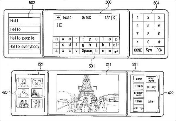 Запатентованная конструкция, по задумке LG, обеспечит рабочую область большого размера. К примеру, при наборе текста на центральной панели может отображаться виртуальная клавиатура, а на боковых — возможные варианты слов и цифровые кнопки.