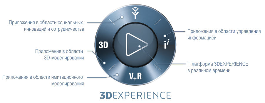 Платформа 3DEXPERIENCE также поддерживает различные отраслевые приложения Dassault Systèmes, помогая обеспечивать конечных пользователей максимально широким спектром возможностей в области 3D-моделирования, имитационного моделирования, социальных инноваций, сотрудничества и управления информацией.