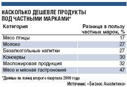 Скорее всего, это будет мясо птицы, ростки пшеницы, деревенский творог. «Мос март» уже начал подыскивать производителей. Сейчас доля собственных торговых марок в магазинах сети составляет порядка 4%, к концу года ее планируется довести до 5%. Кроме СТМ в низком ценовом сегменте компания развивает продукцию в среднем ценовом сегменте.