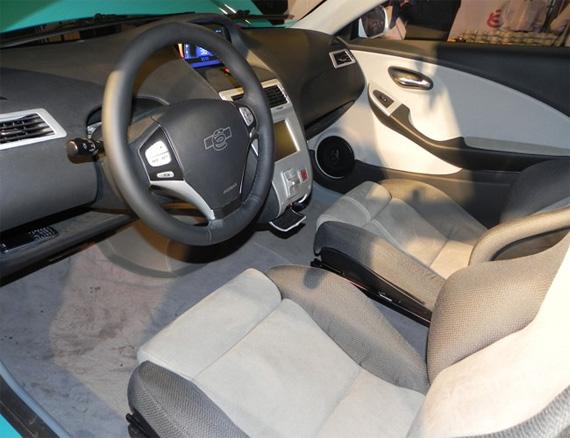 К броской внешности разработчики нового автомобиля добавили и весьма привлекательный интерьер. Все использованные в салоне материалы приятны на ощупь и вдобавок радуют глаз. К тому же дизайн интерьера выполнен по принципу минимализма, чему в том числе способствовала и использованная в «Ё» электрическая трансмиссия. Для выбора режима движения вперед или назад достаточно задействовать специальную клавишу на центральной консоли. На одном из двух цветных дисплеев отображается текущая скорость и заряд конденсаторов, а также прогнозируемый пробег автомобиля из учета оставшегося топлива, используемого для подзарядки двигателя.