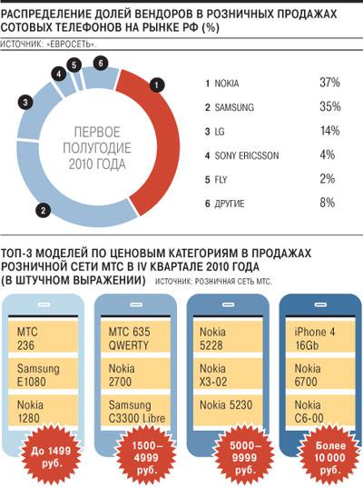 По данным источников 'Ъ', по итогам прошлого года в России было продано 144 тыс. iPhone 4. Из них примерно по 60 тыс. продали МТС и 'Вымпелком', а 24 тыс. были ввезены нелегально. Операторы отказались раскрывать объемы своих продаж, в то же время в 'Вымпелкоме' заявили, что 'приведенные цифры схожи с данными, которые они видят в своей сети'.