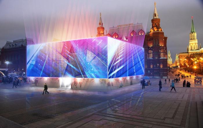 UPD: По словам Владимира Яковлева, пресс-секретаря департамента СМИ и рекламы Москвы, в данный момент на Манежной площади строится медиакуб к Всемирному рекламному саммиту и фестивалю «Круг Света», где пройдут лекции от ведущих мировых экспертов в области световых инсталляций и видеомэппинга. Как пишет «Газета.Ru», «Роснефть» является одним из спонсоров мероприятия, и ее логотип идет перебивками с логотипами других спонсоров.