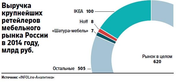 По данным компании «INFOLine-Аналитика», российский мебельный рынок в 2014 году вырос на 17%, до 620 млрд руб. «После декабрьского аномального пика продаж мы ожидали январского спада, но пока не видим его», – рассказал совладелец российской мебельной сети Hoff Михаил Кучмент.