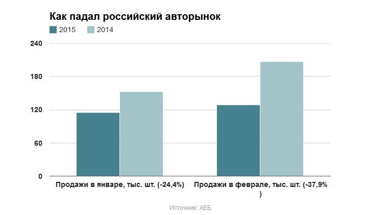 Лидером на российском авторынке пока остается АвтоВАЗ, однако в феврале 2015 года продажи автомобилей Lada в годовом исчислении упали на 23%. Всего в феврале россияне купили 23,6 тыс. автомобилей Lada. По собственной оценке, в прошлом месяце АвтоВАЗ занимала 19,3% авторынка без учета LCV.