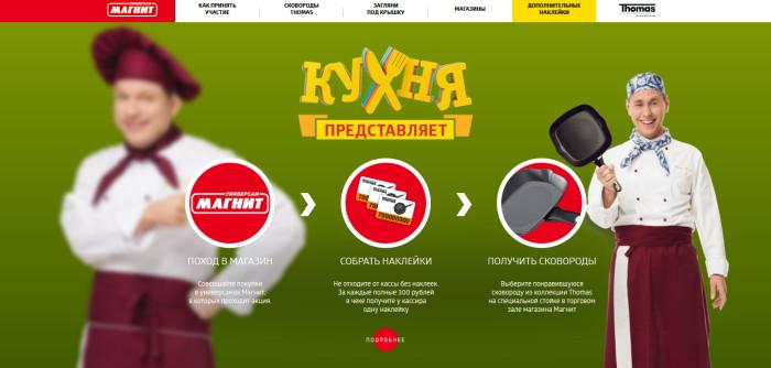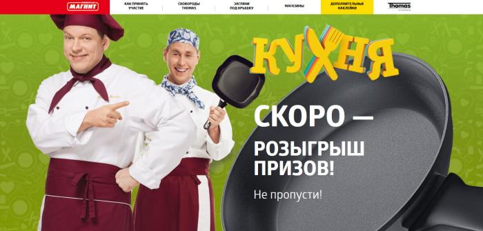 Слоган «Кухня» рекомендует» и персонажи телесериала используются на POS материалах разных форматов (ценники, постеры, топперы и т.д.) в магазинах сети «Магнит», участвующих в акции. В рамках кампании также будет действовать специальный промосайт www.thomasmagnit.ru, где можно ознакомиться с условиями акции и принять участие в дополнительных конкурсах.