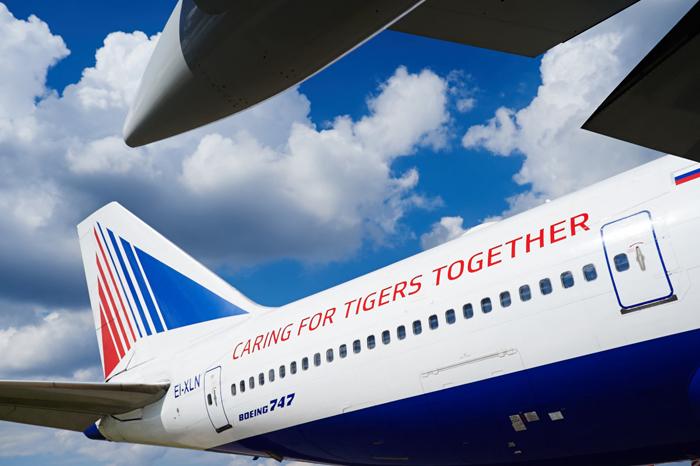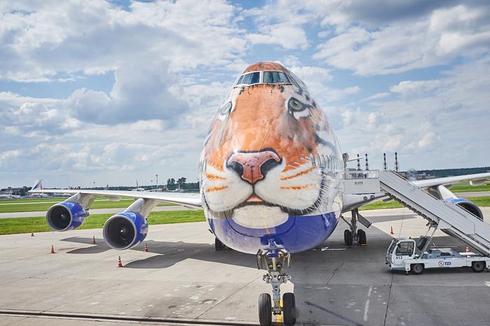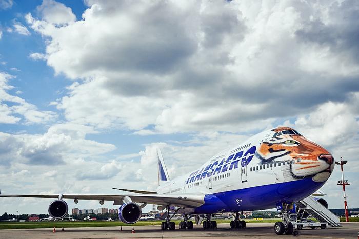 В рамках проекта «Полосатый рейс» широкофюзеляжный дальнемагистральный самолет «Трансаэро» Boeing 747-400, вмещающий 447 пассажиров, получил новую ливрею. Носовая часть воздушная судна была украшена изображением головы амурского тигра. Тигриный окрас со временем появится и на отдельных деталях интерьера пассажирского салона.