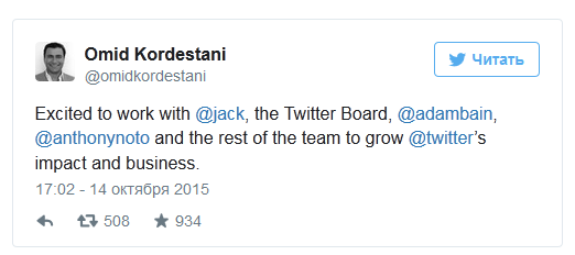 Cтарший вице-президент и директор по развитию бизнеса Google Омид Кордестани назначен председателем совета директоров Twitter