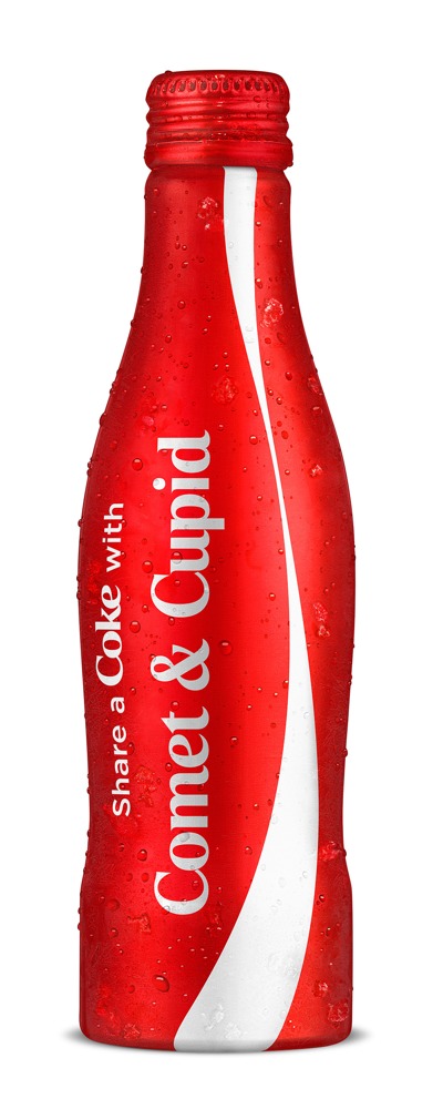 Праздничные бутылочки Coca-Cola будут призывать владельцев поделиться напитком с Сантой, эльфами, кем-то милым, кем-то непослушным или с миссис Клаус. Также на алюминиевых баночках можно будет найти имена оленей, которые американские дети знают наизусть: Dasher & Dancer, Prancer & Vixen и Comet & Cupid.