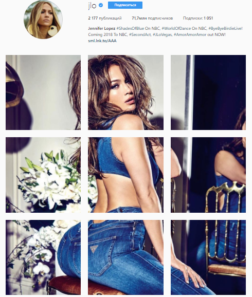 После объявления о сотрудничестве Джей Ло выложила в Instagram сразу девять фотографий, в которых она позирует в продукции от Guess.