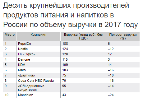 KDV, выпускающая продукцию под брендом «Кириешки», «Бабкины семечки» и «Яшкино», в 2017 году впервые вошла в топ-5 крупнейших производителей продуктов и напитков в России по объему выручки, передает «Коммерсантъ» со ссылкой на данные Infoline.