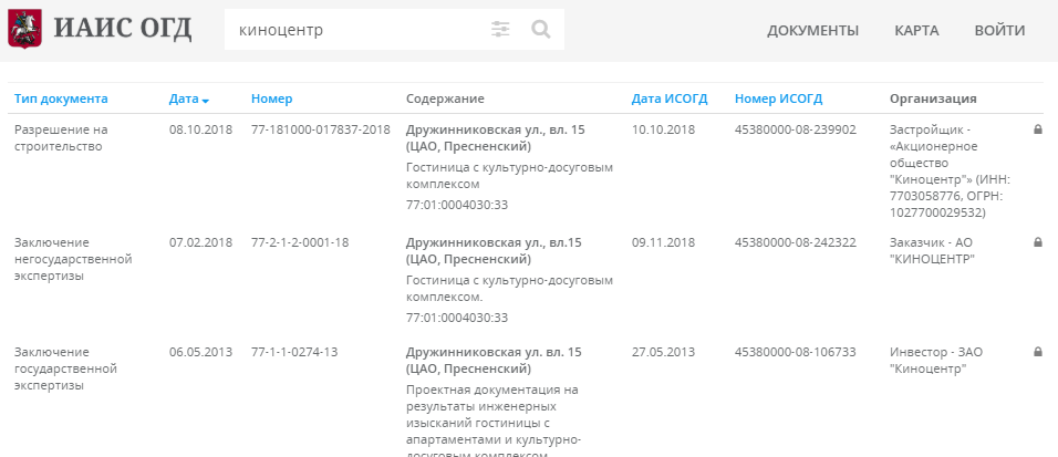 АО «Киноцентр» в октябре получило разрешение на строительство гостиницы с культурно-досуговым комплексом на Дружинниковской улице, вл. 15. По этому адресу расположен киноцентр «Соловей» на Красной Пресне. Об этом пишут «Ведомости» со ссылкой на сайт информационной системы обеспечения градостроительной деятельности Москвы.
