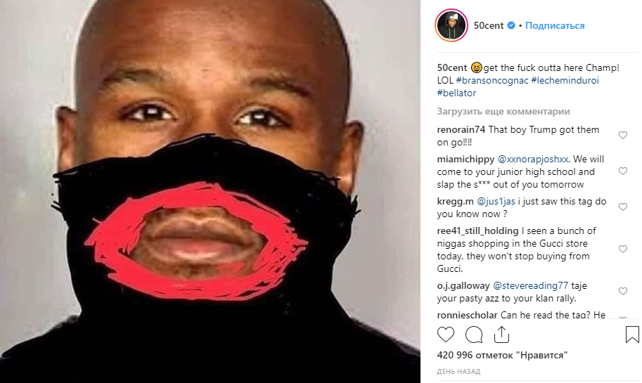 Теперь и рэпер 50 Cent присоединился к бойкоту. В знак протеста музыкант сжег свою футболку от Gucci. Соответствующее видео он выложил в Instagram с подписью «Я вынужден избавиться от всех вещей Gucci. Я больше не поддерживаю этот бренд». Музыкант также пообещал раздать всю имеющуюся у него одежду марки бездомным.