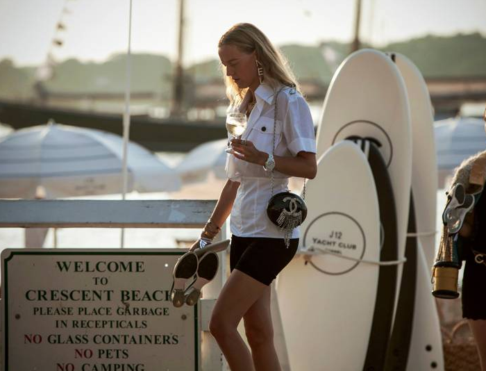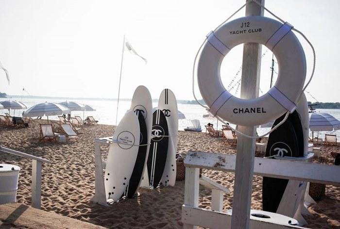 В яхт-клубе Chanel все оформлено в фирменных черно-белых цветах — зонтики, доски для серфинга, спасательные круги и даже буйки на воде. Тут можно позагорать на шезлонге, позаниматься серфингом или поиграть в бадминтон.