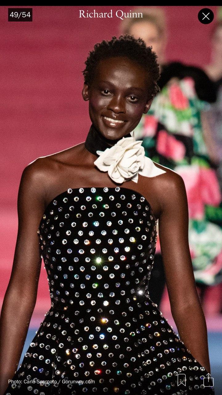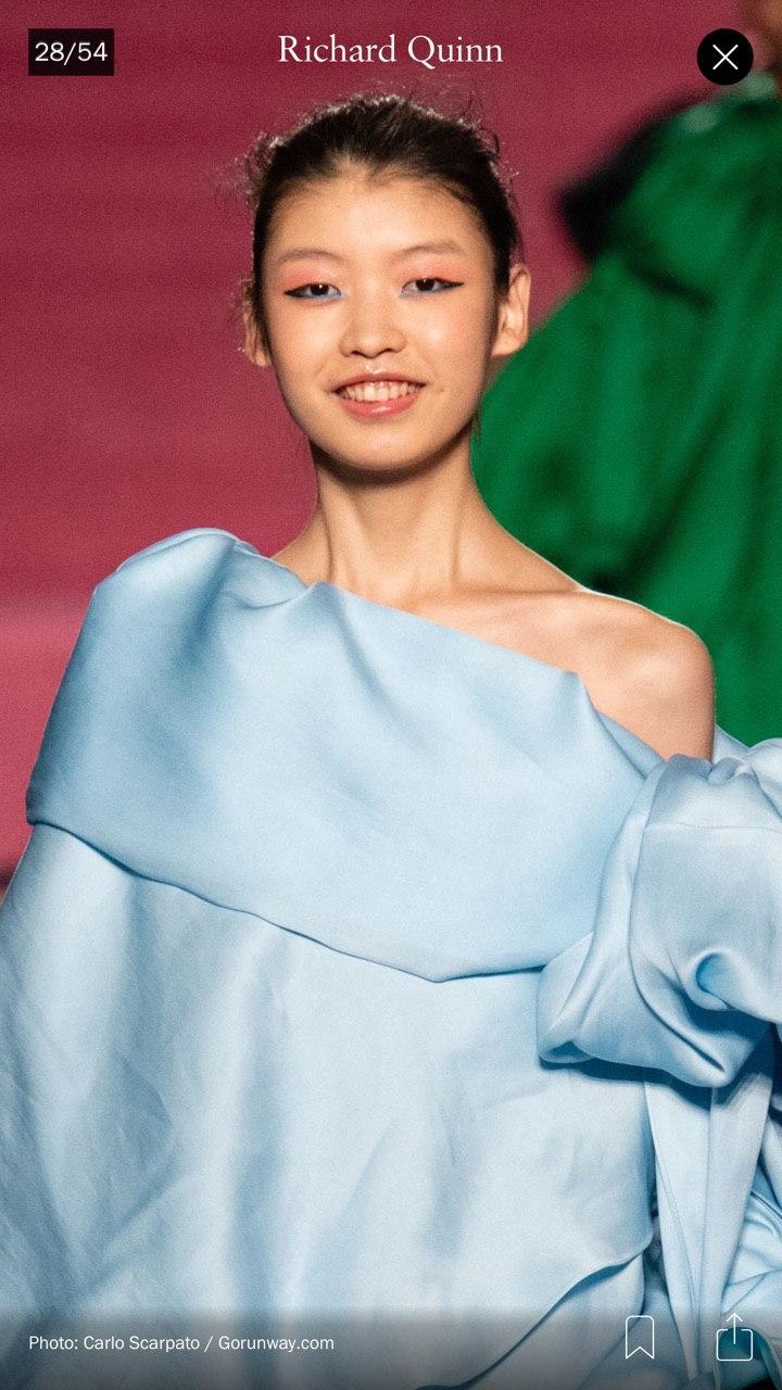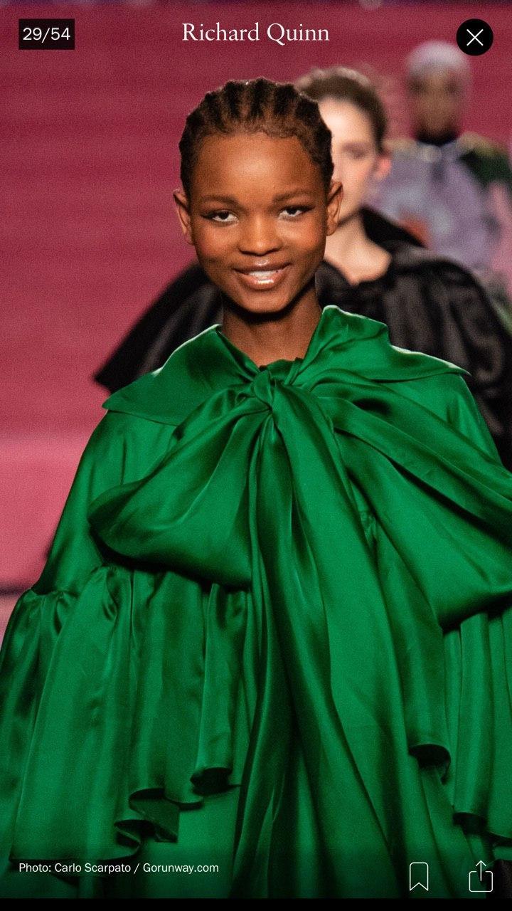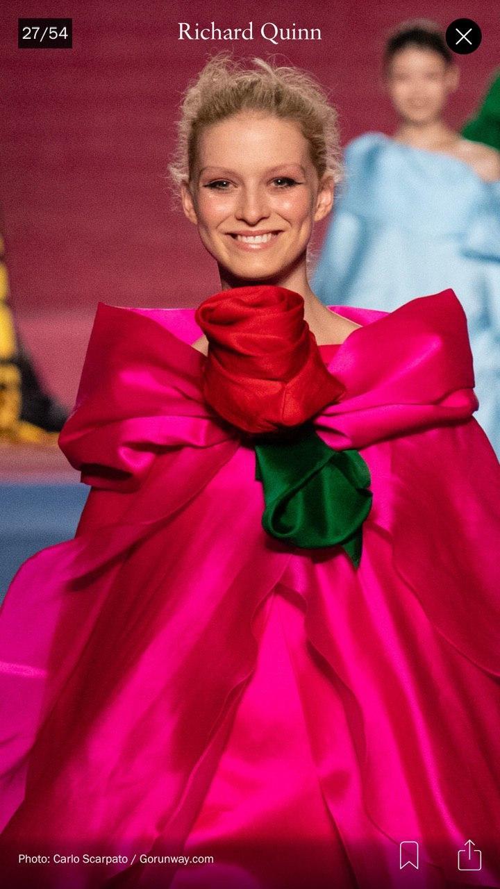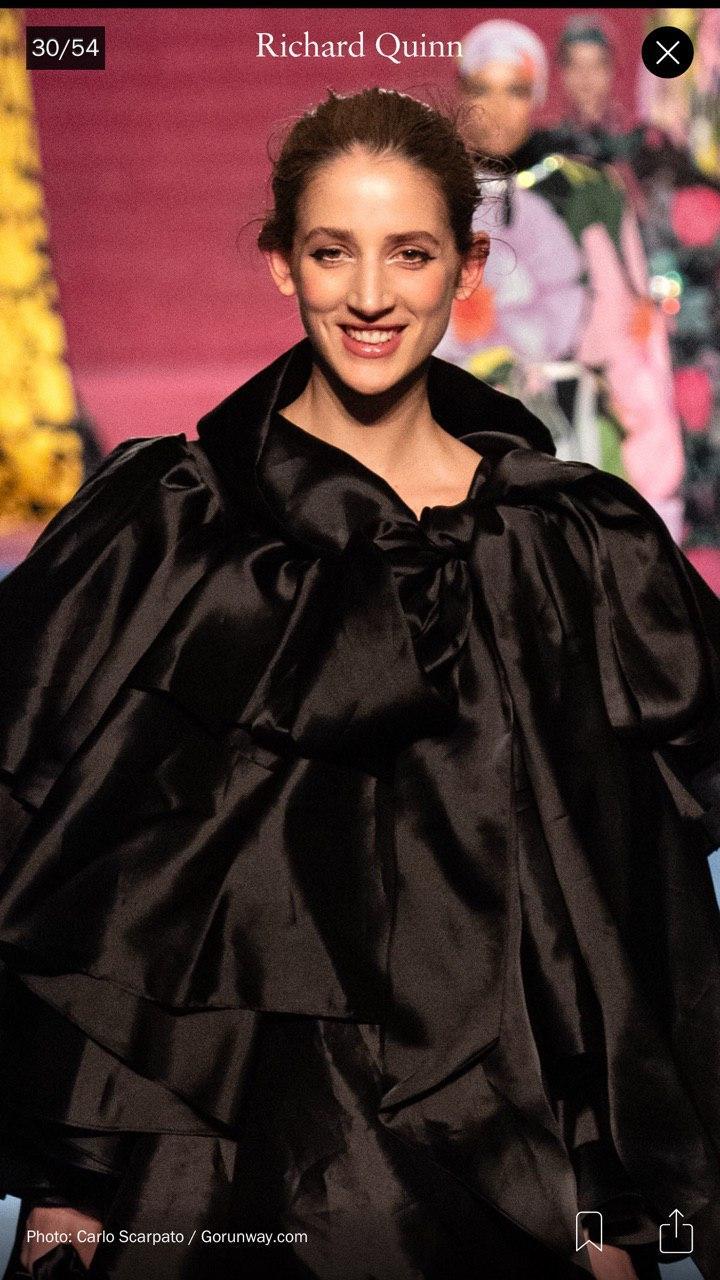 Во время показа коллекции осень-зима 2020 британского дизайнера Richard Quinn на Неделе моды в Лондоне модели удивили зрителей неожиданным выражением лица — девушки улыбались во весь рот.