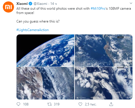 Производитель Xiaomi запустил на орбиту Земли специальный спутник — с камерой своего нового смартфона Mi 10 Pro. Об этом компания сообщила в своем аккаунте в Twitter.