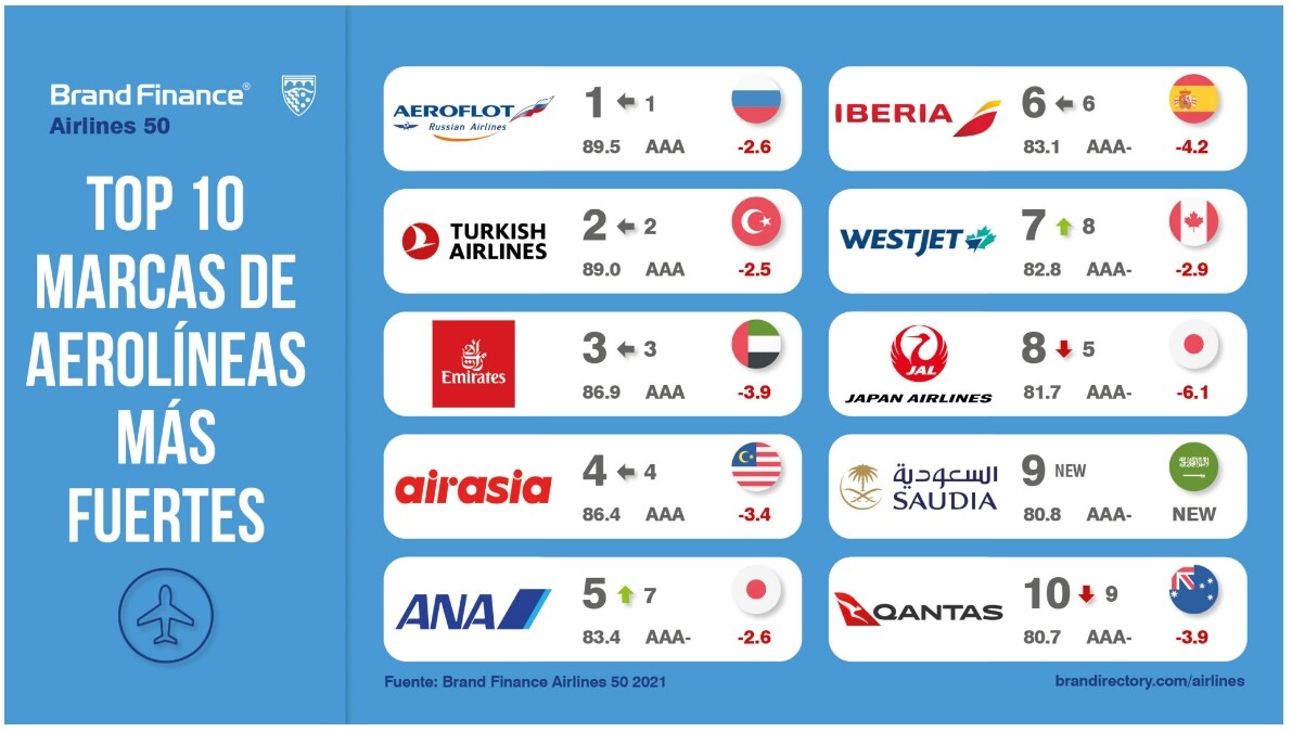 Рейтинг был составлен по результатам анализа 30 разных факторов— маркетинговых вложений, положения на внутреннем рынке, размера исреднего возраста флота, удовлетворенности персонала, уровня клиентскойлояльности, репутации компании, узнаваемости. Сокращение объемов воздушныхперевозок в мире не повлияло на лояльность пассажиров по отношению кроссийскому перевозчику, отметили авторы рейтинга.
