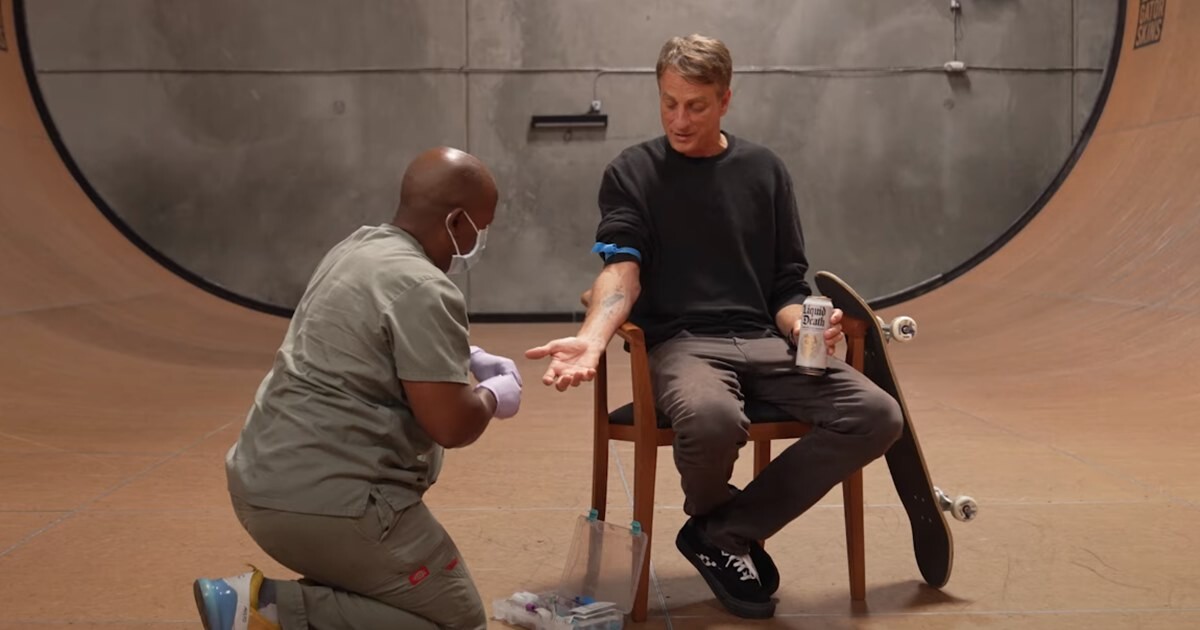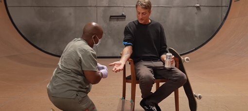 Скейтер Тони Хоук совместно с производителем воды Liquid Deathвыпустили 100 досок для скейтбординга, в краску которых добавили кровьспортсмена. Скейтбордыбыли проданы в течение получаса после анонса, несмотря настоимость в $500 за каждый.