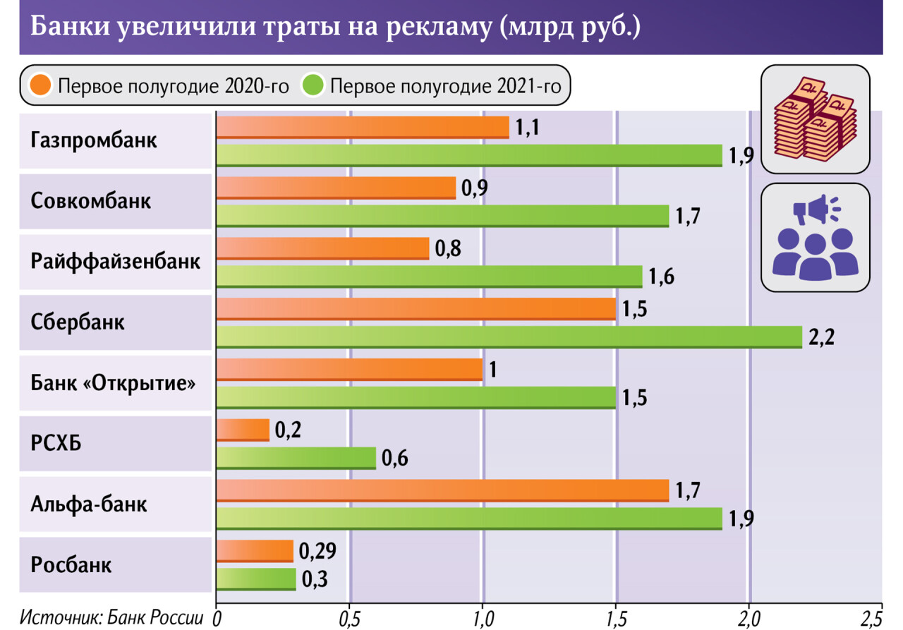 Расходы банков на рекламу увеличились в первом полугодии 2021 года