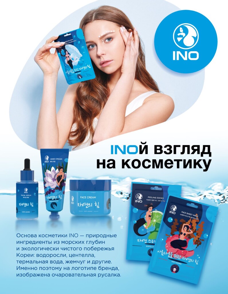 Бренд поддерживает философию «красота через здоровье». Продукция не содержитагрессивных синтетических ингредиентов. Основа собственной торговой марки INO –натуральные и экологичные ингредиенты: жемчуг, водоросли, термальная вода.Символом бренда стала русалка, в корейской мифологии называемая Ino.