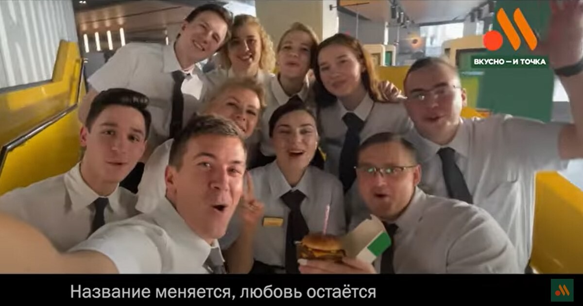 На канале «Вкусно — и точка» наYouTube появился первый рекламный ролик. Представлены двеверсии: короткая на 10 секунд и более длинная на 45 секунд. Акцент сделан том,что персонал, поставщики и качество продукта остались прежними – «темисамыми».