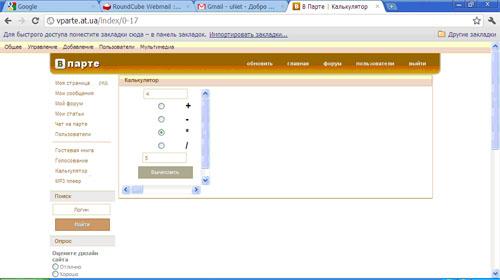 Сайт сделан на бесплатной платформе Ukoz, однако, по словам разработчиков, в дальнейшем сеть должна перейти на другую платформу. Сложная система регистрации (трижды надо ввести шестизначный код подтверждения – против спама), 33 пользователя после месяца работы, но самое безумное – это приложение «Калькулятор». Нет слов, чтобы описать его, и нет мыслей, зачем это приложение понадобилось. Чтобы хоть что-то было, услужливо подсказывает внутренний голос. Впрочем, все равно калькулятор не работает.