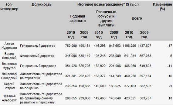 Совет директоров 'СТС Медиа' не разделяет мнения гендиректора относительно продемонстрированных 'рекордных' результатов, следует из опубликованных вчера материалов холдинга к годовому собранию акционеров. Перед шестью топ-менеджерами в 2010 году ставилась задача довести долю СТС до 12,3%, ДТВ — до 2,3%. Невыполнение этого показателя отразилось на годовых бонусах всех ключевых сотрудников. Так, вознаграждение Антона Кудряшова составит $315 тыс. вместо $450 тыс., или 70% от максимально возможного бонуса (в свою очередь, равняется 60% годовой зарплаты). Генеральному продюсеру Вячеславу Муругову, отвечающему за телевизионный контент, выплатят только 53% положенного бонуса, или $108,2 тыс. По итогам работы в 2010 году господин Муругов не был положительно аттестован гендиректором, указано также в материалах. Помимо аудиторных показателей свои конкретные задачи полностью не выполнили в 2010 году финансовый директор холдинга Борис Подольский и заместитель гендиректора по стратегии Вячеслав Синадский. Кроме того, гендиректор был не полностью удовлетворен работой Сергея Петрова, отвечающего за вещание. В целом шесть топ-менеджеров недополучили $397,96 тыс.